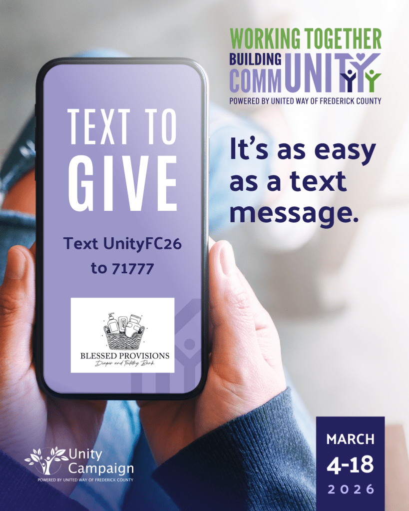 Blessed Provisions is the only exclusive diaper and toiletry bank in Frederick County, Maryland. We bridge the gap by providing hygiene essentials directly through strategic community partners already servicing families (e.g., schools and social service agencies).