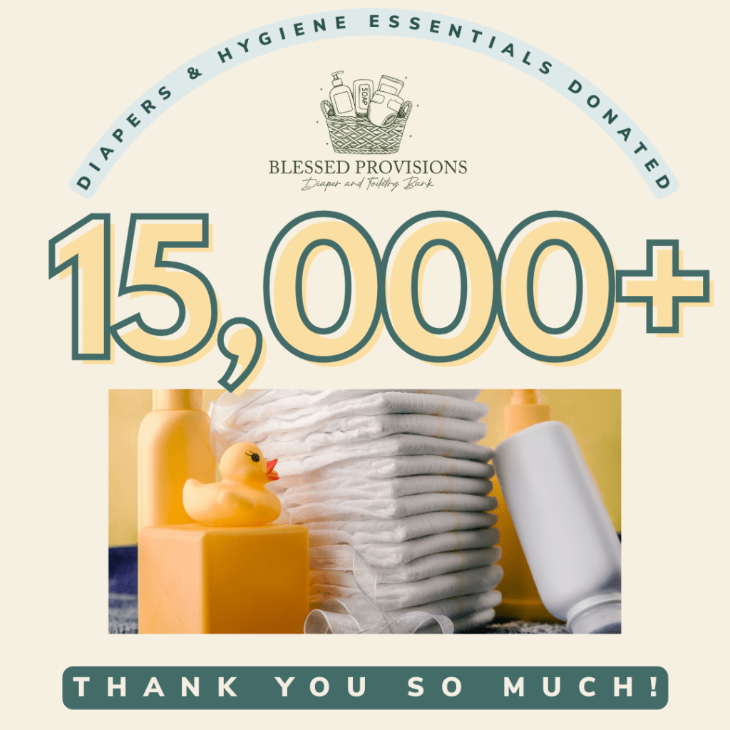 Since our official launch this summer, Blessed Provisions Diaper & Toiletry Bank has collected 5,857 diapers through the generosity of our community. Already, we have placed 1,822 diapers and hygiene essentials directly into the hands of local families who need them most.