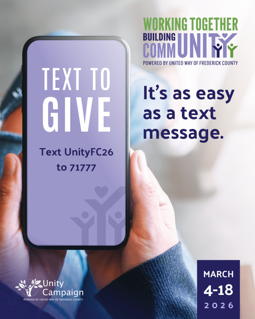The Unity Campaign is a collaborative project between nonprofit partners, sponsors, and the greater Frederick community to support our most vulnerable neighbors by giving to a nonprofit organization of your choice. 100% of individual contributions go to the designated nonprofit. Every gift will be matched by the Incentive Match Fund. The Unity Campaign is an annual fundraiser in March.